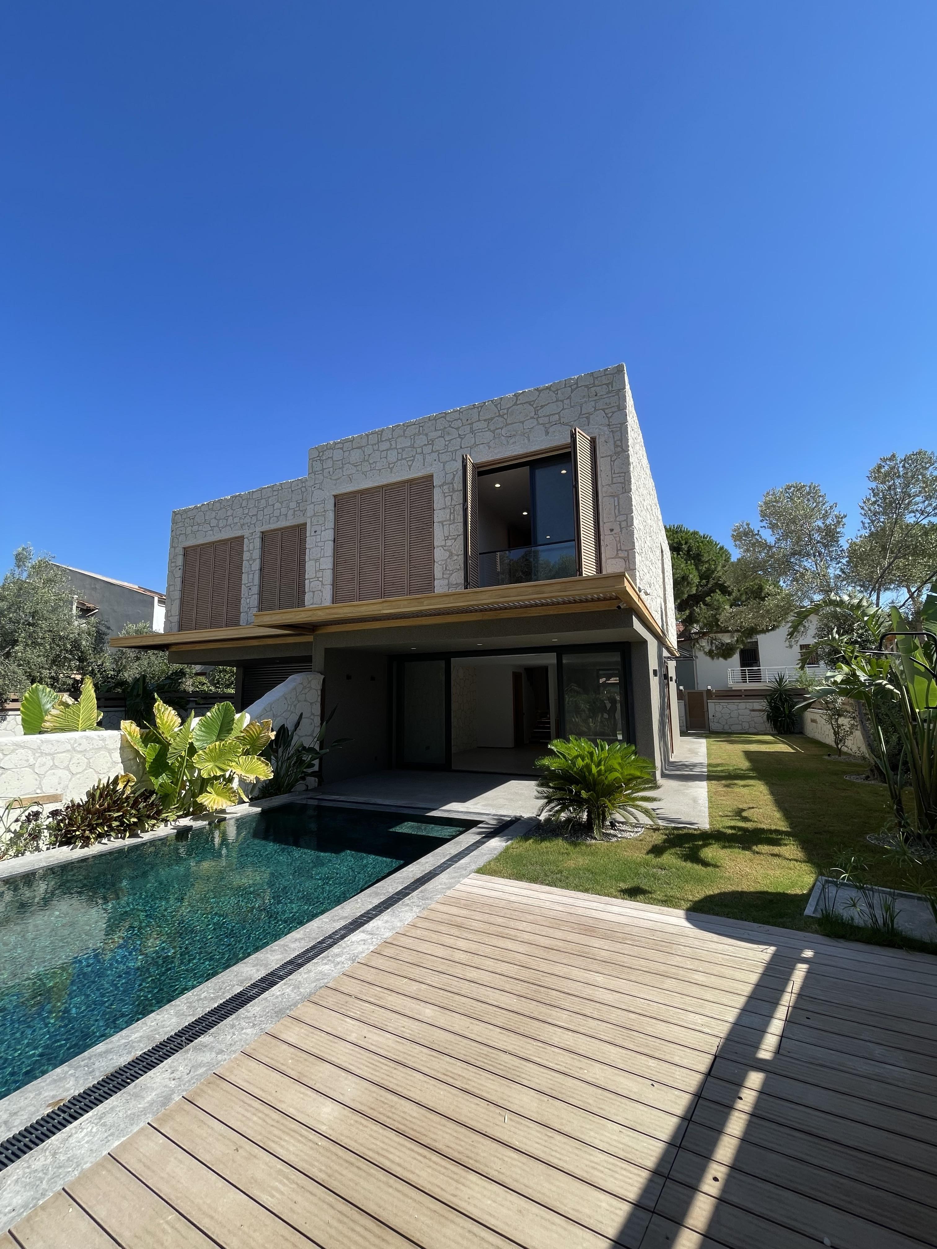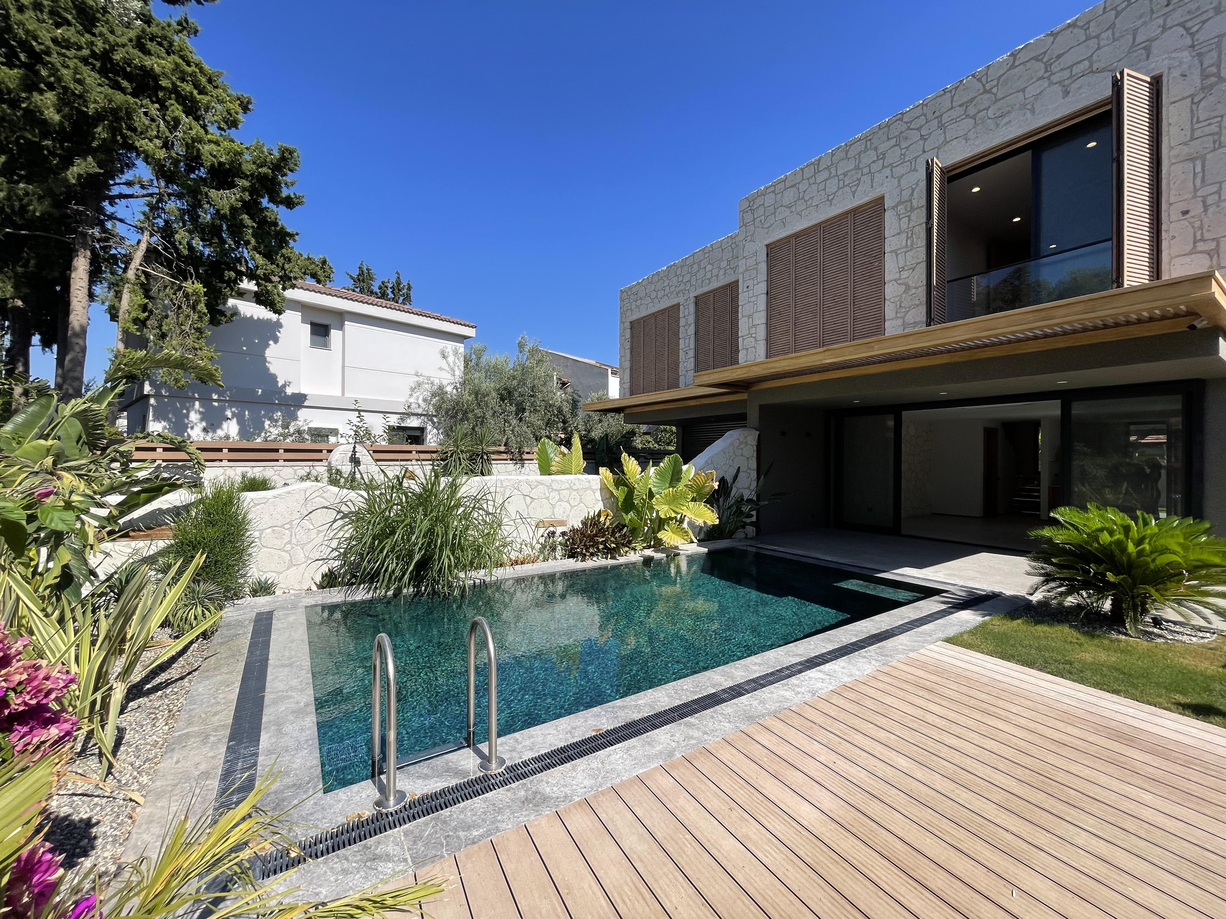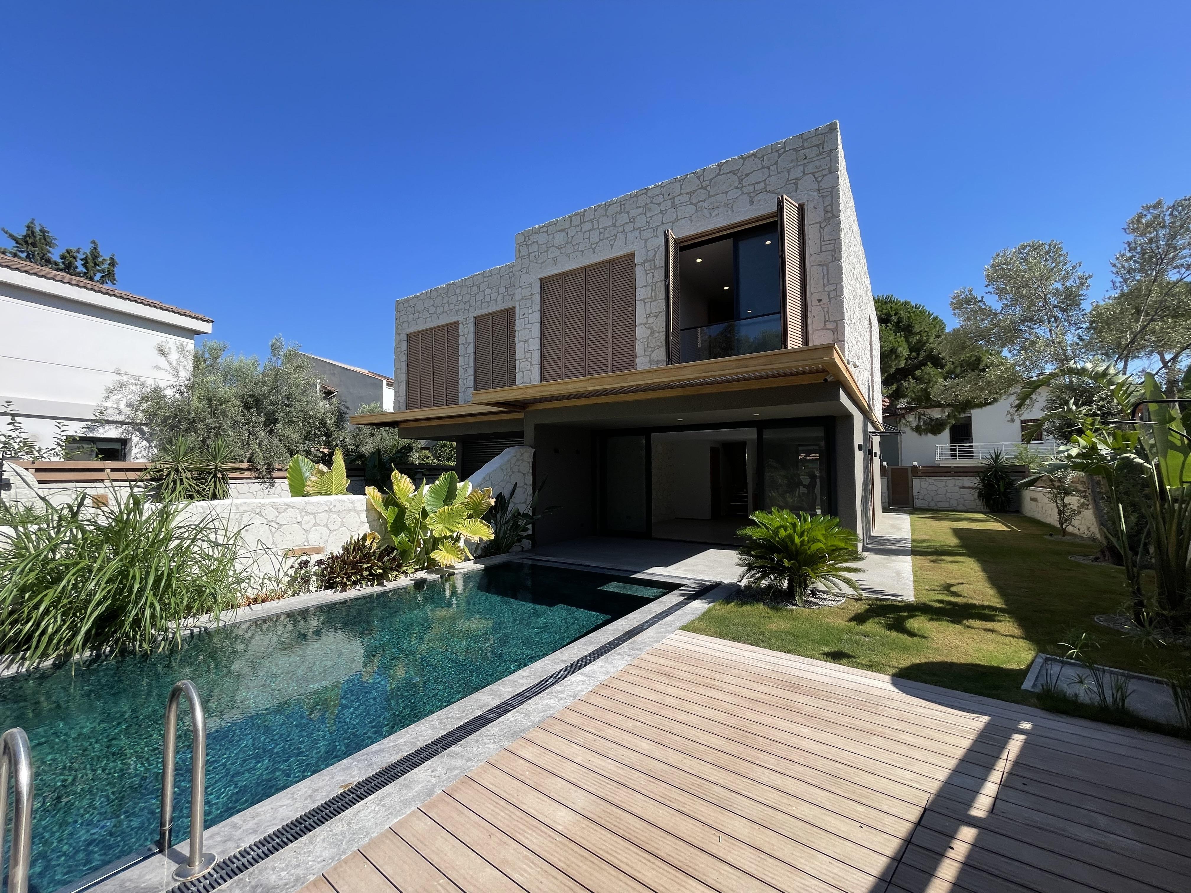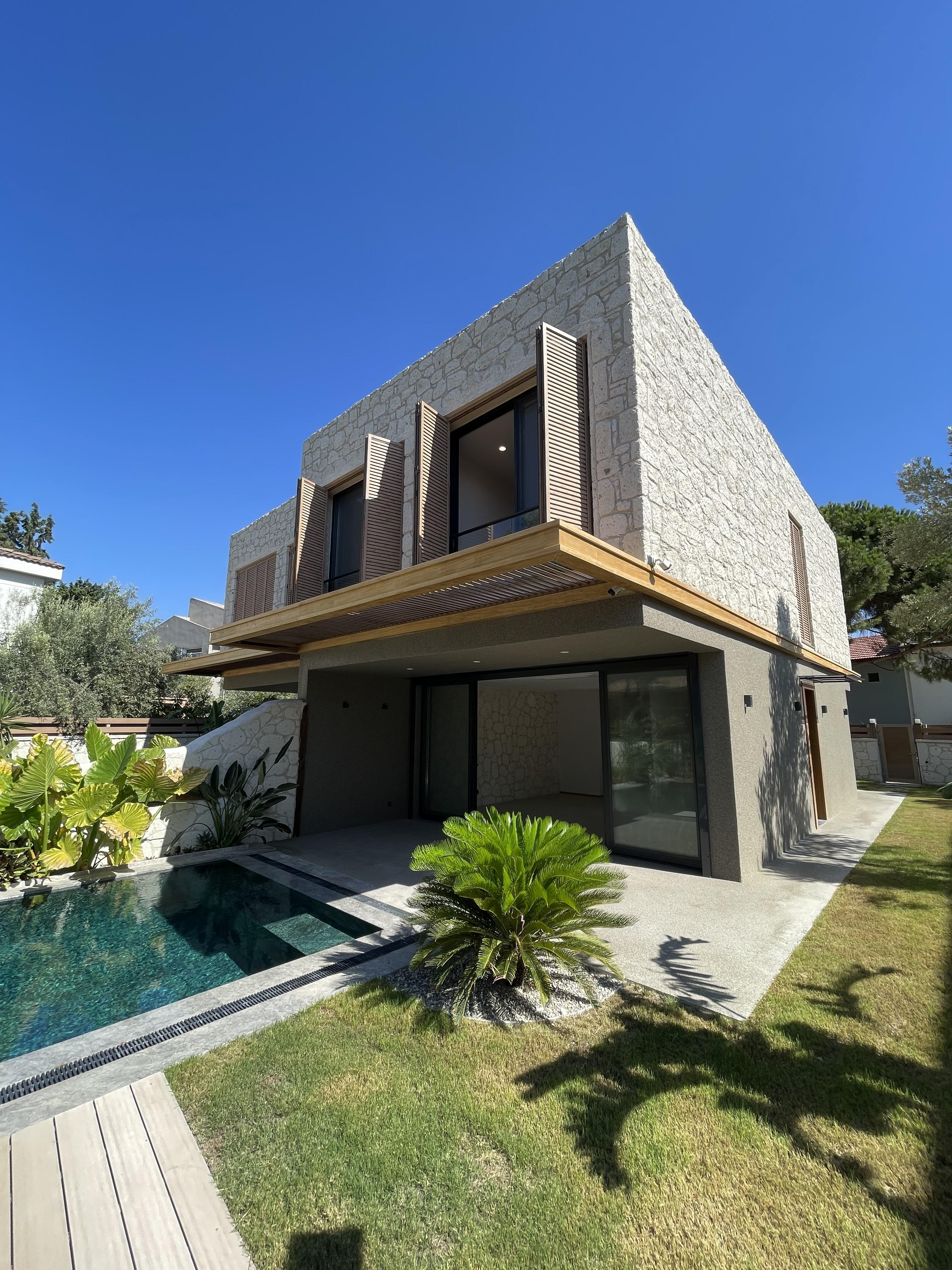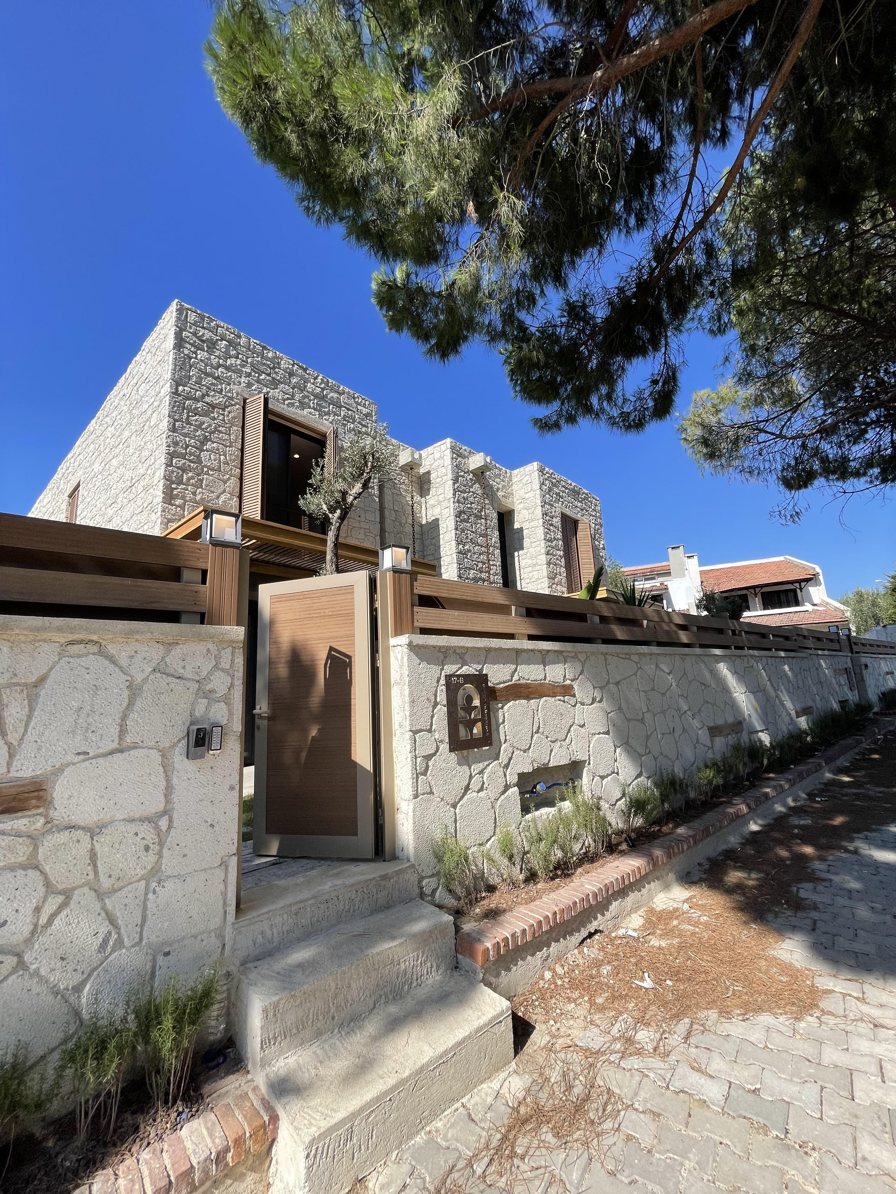 Çeşme Alaçatı’da Çamlıkyol Yakını , Taş Konsept , Harika Bahçe ve Peyzaj Alanına Sahip Sıfır Lüks Villamız Yeni Sahibini Bekliyor.